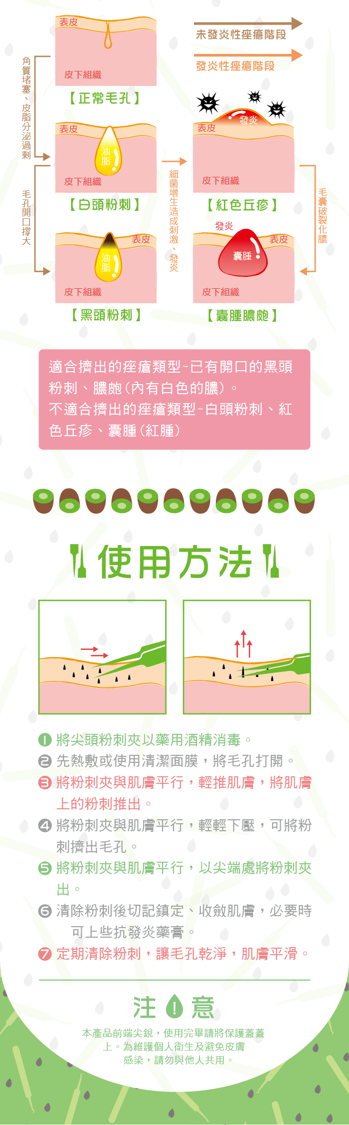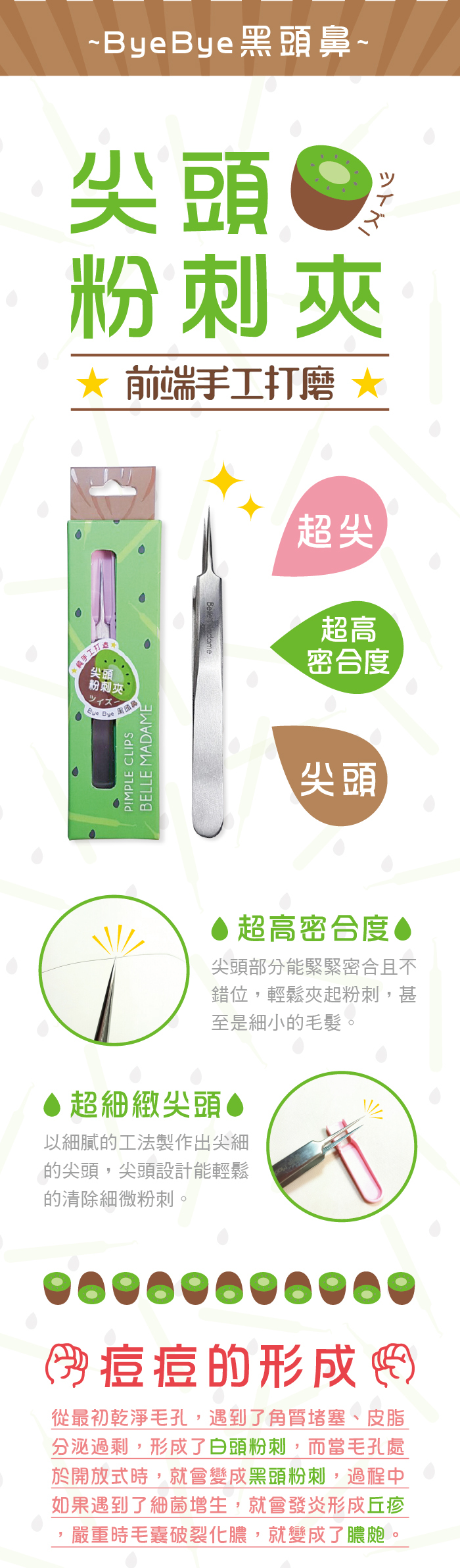超尖細尖頭粉刺夾,前端手工打磨、密合度高不易滑手;適合黑頭粉刺、細小粉刺與雜毛夾取,日常清潔更精準。